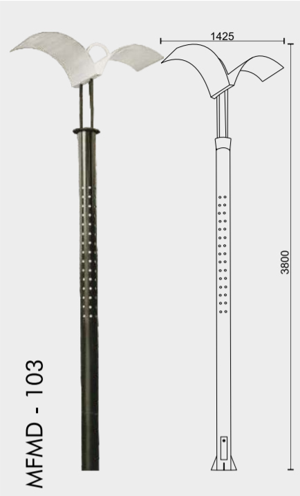 Decorative indirect pole made of galvanised Mild steel pipes fitted with cast aluminum Fixture duly polyurethane paint coated fitted with 40watt LED lamp and 2nos LED tubes.