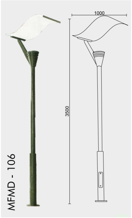 Decorative indirect pole made of galvanised Mild steel pipes fitted with cast aluminum Fixture duly polyurethane paint coated fitted with 40watt LED lamp.